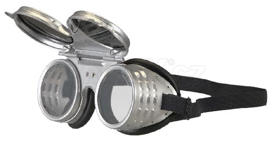 Materiál: brýle - hliník, čirý zorník - bezpečnostní sklo, svářecí zorník - svářecí filtr