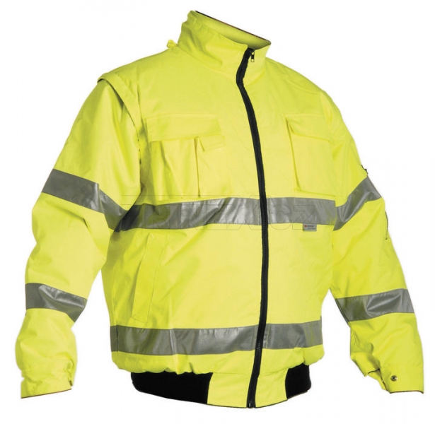 Zateplená reflexní bunda,reflexní pásky 3M,kapuce v límci, bunda je nepromokavá,odepínací rukávy,5+1 kapsa,polyester povrstvený polymerem,zateplení PES,podšívka PES, přelepené švy, polopružný pas.